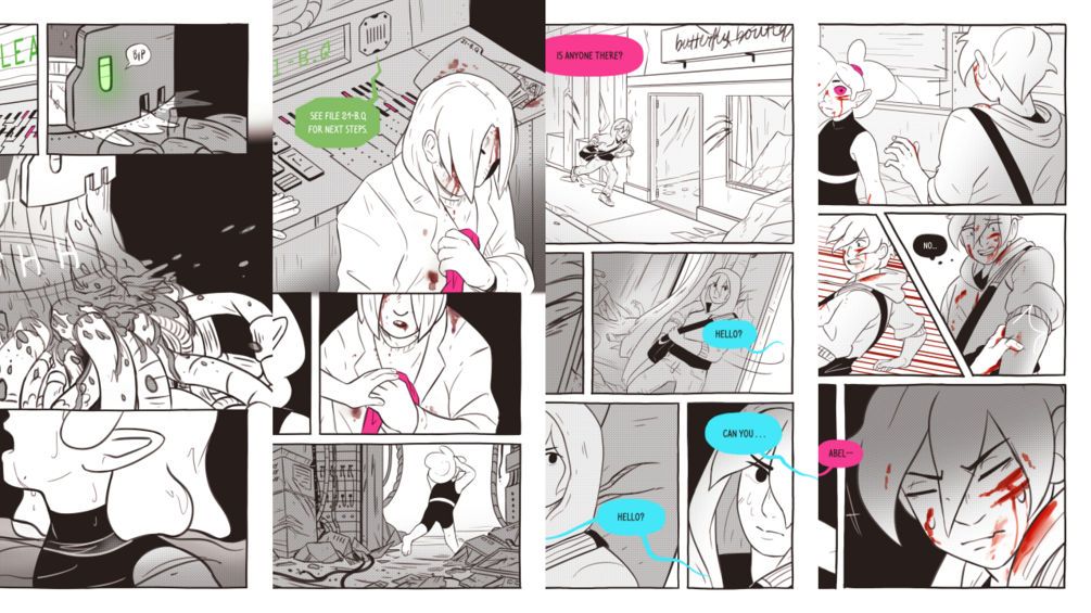 A short comic about a couple of monsters meeting in the leftovers of a ruined world.